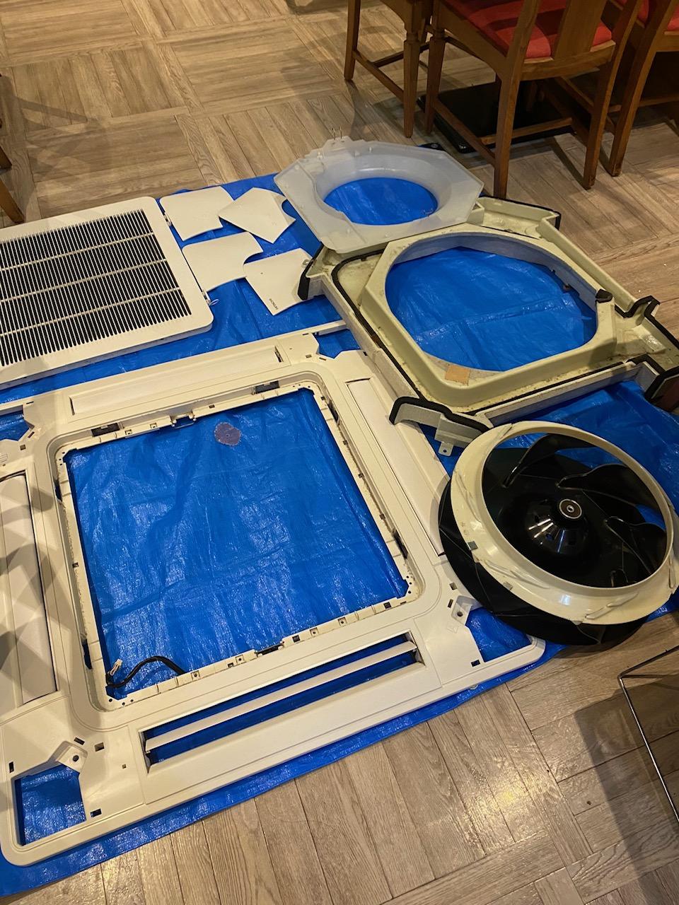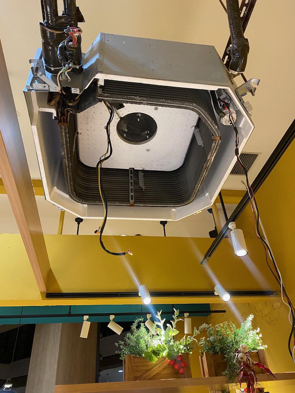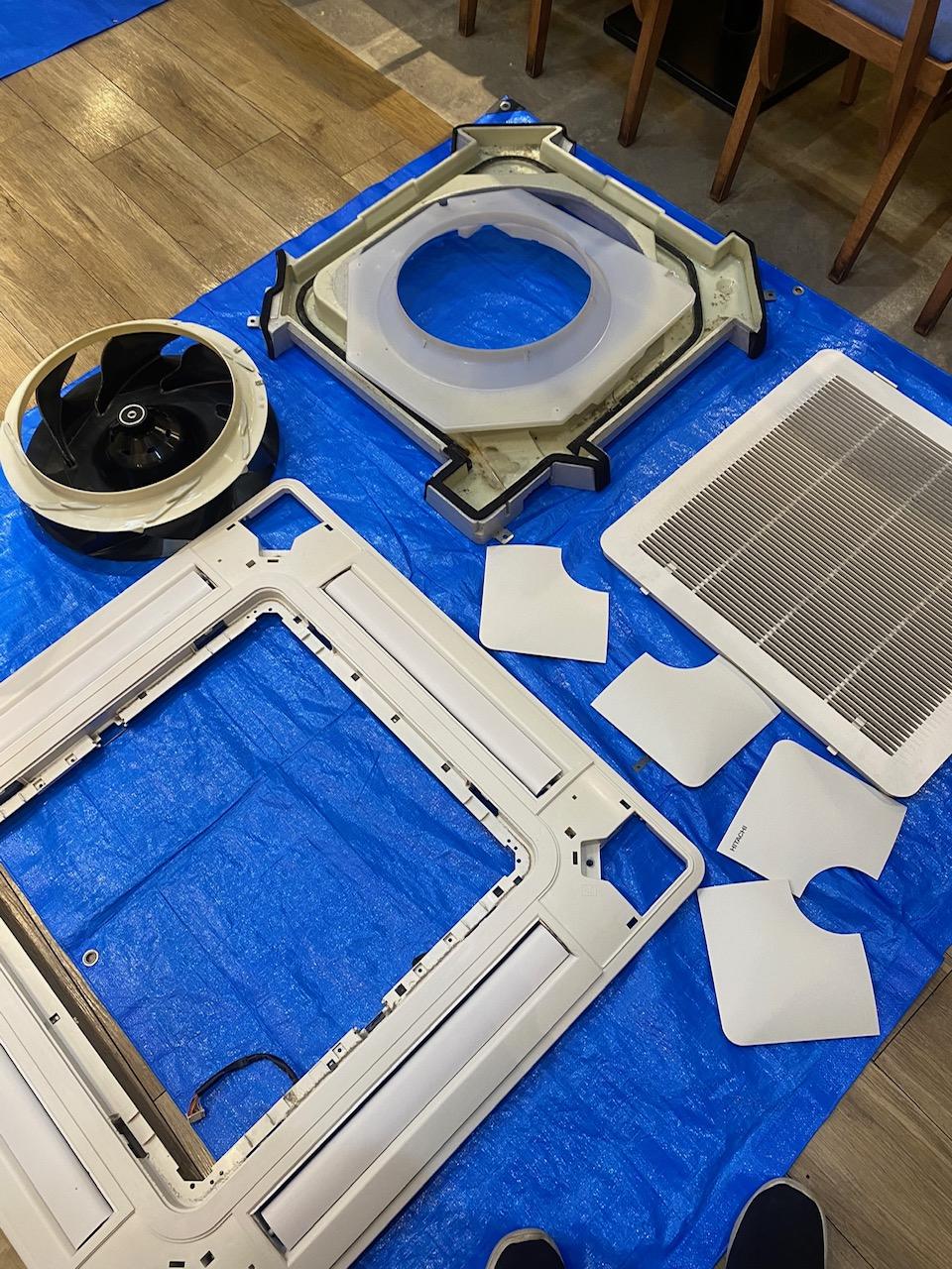 業務用のテンカセエアコンのクリーニング。